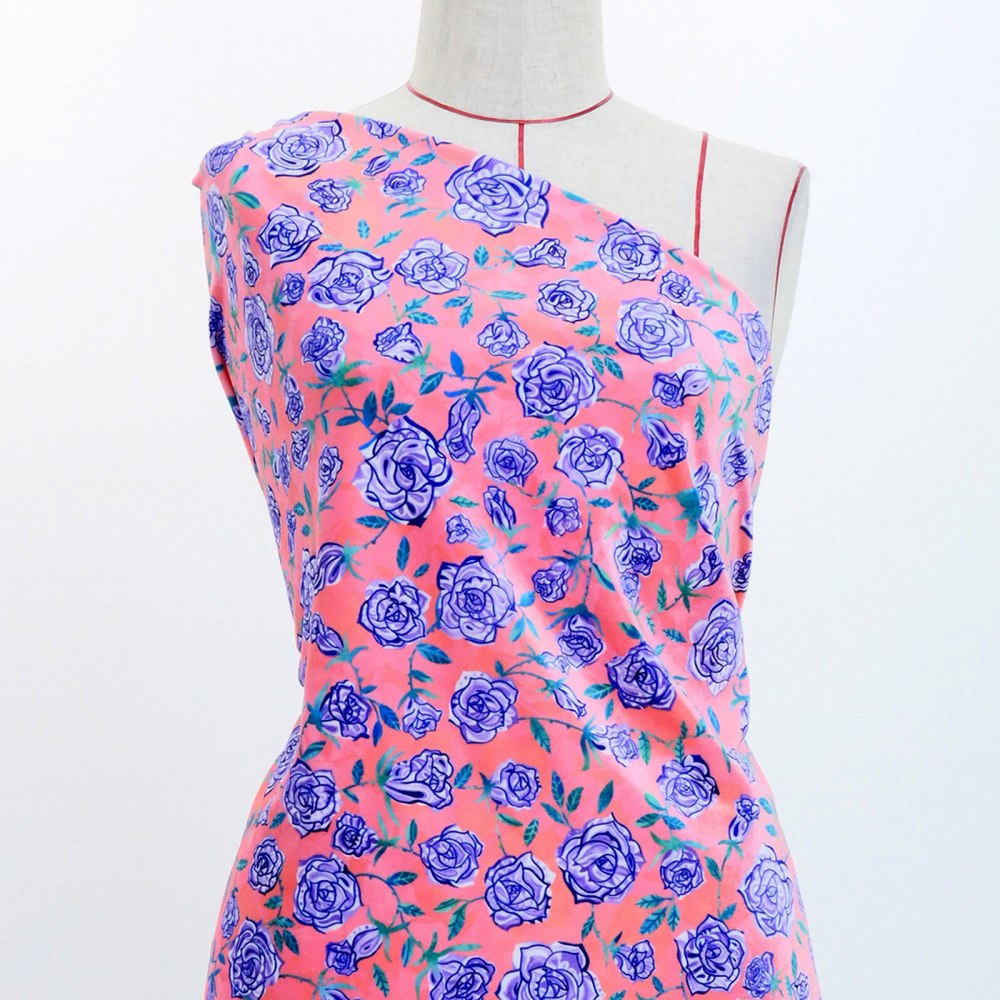 フラメンコ生地 ローズペイズリー柄 コシボ・シャンタン・ストレッチベロア選べる生地 ピンク KF-087-PI 3-5営業日後発送
