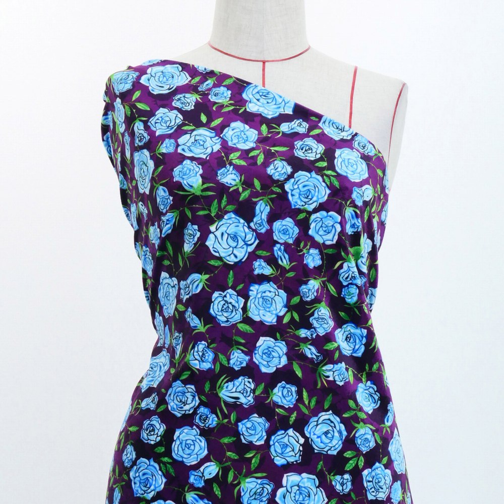 フラメンコ生地 ローズペイズリー柄 コシボ・シャンタン・ストレッチベロア選べる生地 パープル KF-087-PU 3-5営業日後発送