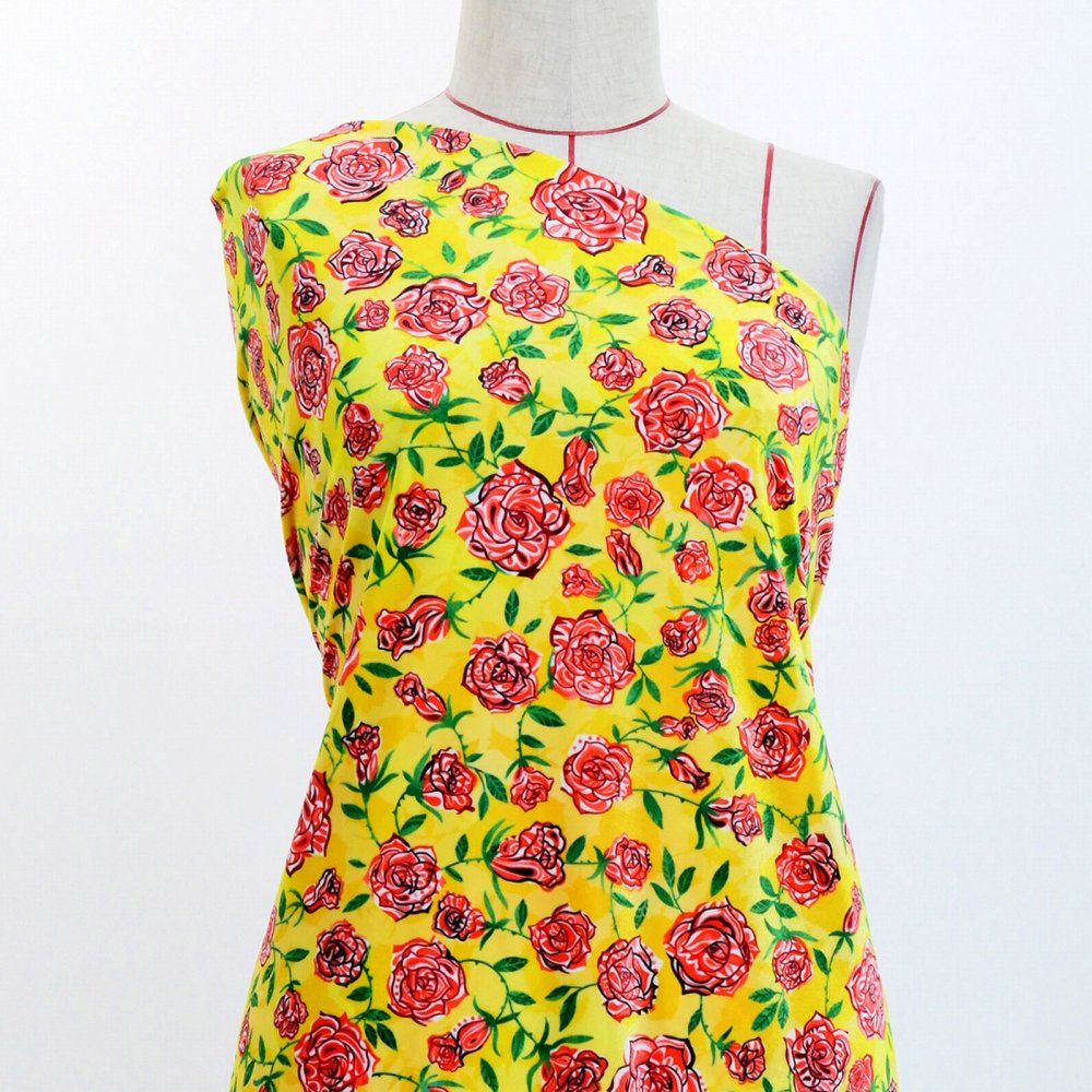 フラメンコ生地 ローズペイズリー柄 コシボ・シャンタン・ストレッチベロア選べる生地 イエロー KF-087-YE 3-5営業日後発送