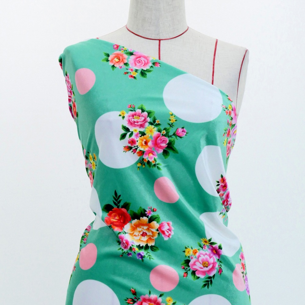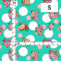 フラメンコ生地 ブーケ×水玉柄 コシボ・シャンタン・ストレッチベロア選べる生地 ターコイズブルー KF-095-TBL 3-5営業日後発送