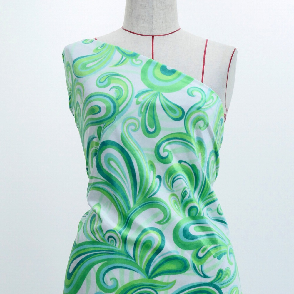 フラメンコ生地 ペイズリー柄 コシボ・シャンタン・ストレッチベロア選べる生地 ホワイト×アクアグリーン KF-105-WHAQ 3-5営業日後発送