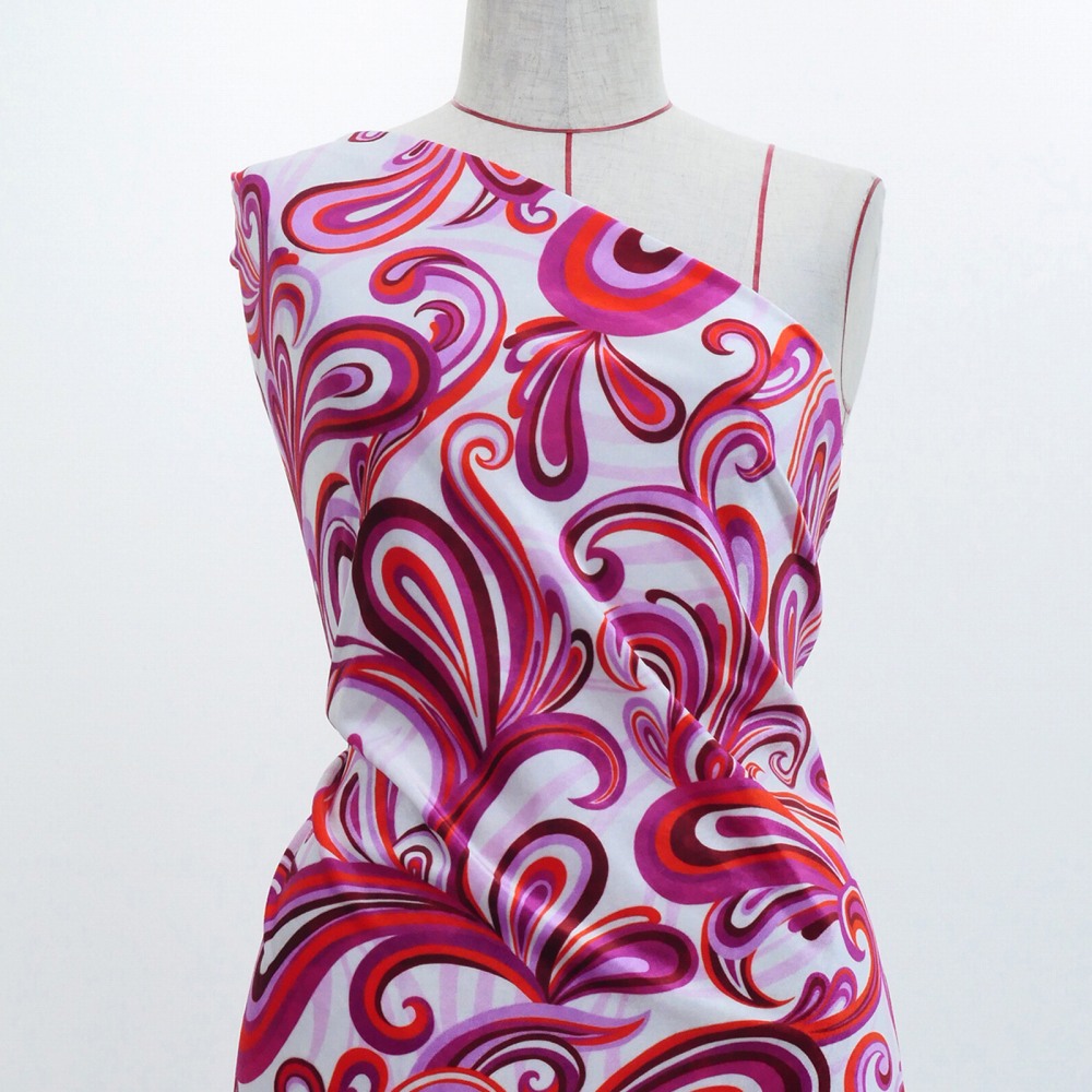 フラメンコ生地 ペイズリー柄 コシボ・シャンタン・ストレッチベロア選べる生地 ホワイト×ピンク KF-105-WHPI 3-5営業日後発送