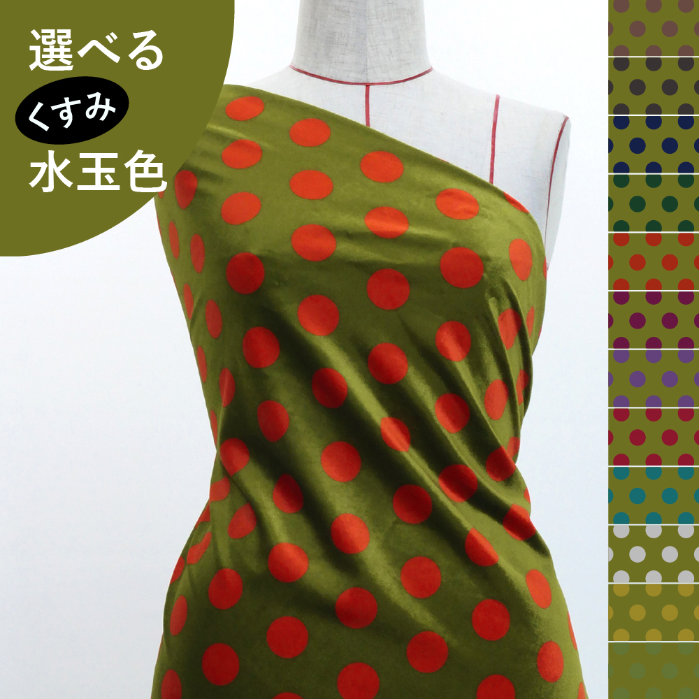 フラメンコ生地 くすみ水玉柄 コシボ・シャンタン・ストレッチベロア選べる生地 選べるくすみ水玉色 カーキ KF-141 3-5営業日後発送