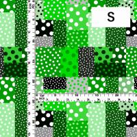 フラメンコ生地 水玉×パッチワーク柄 コシボ・シャンタン・ストレッチベロア選べる生地 グリーン KF-195-GR 3-5営業日後発送