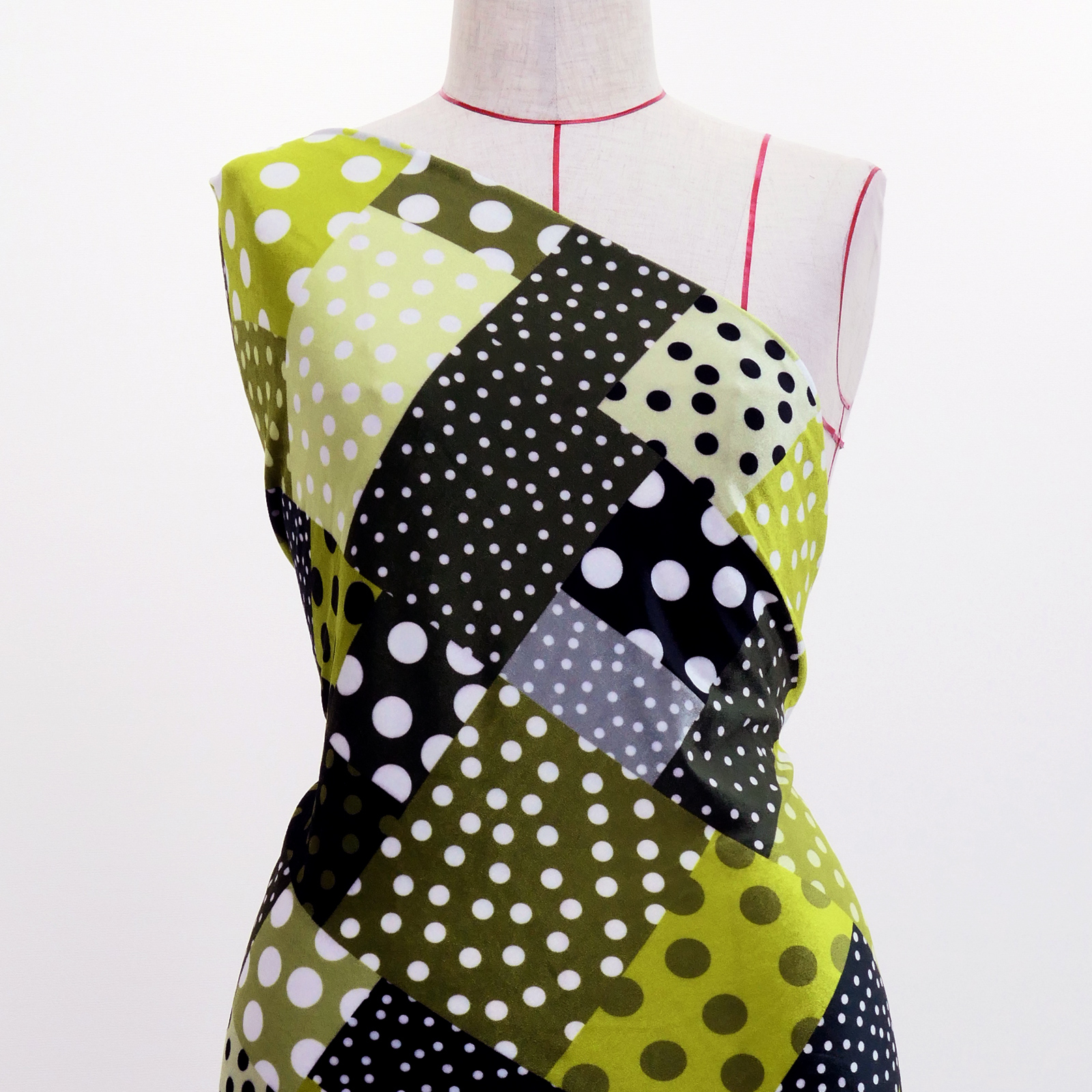 フラメンコ生地 水玉×パッチワーク柄 コシボ・シャンタン・ストレッチベロア選べる生地 イエロー KF-195-YE 3-5営業日後発送