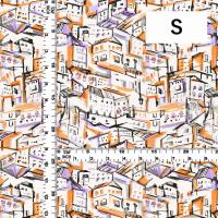 フラメンコ生地 街並み柄 コシボ・シャンタン・ストレッチベロア選べる生地 オレンジ KF-197-OR 3-5営業日後発送