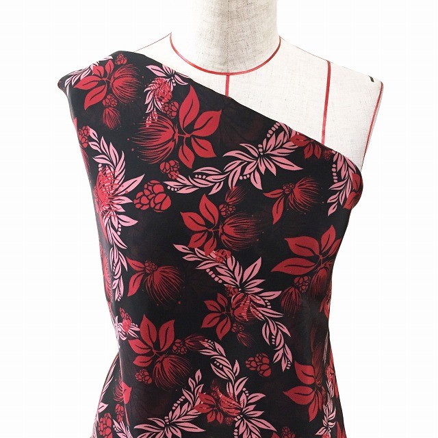 ハワイアン生地 レフア柄 コシボ生地 ブラック×レッド KH-514-BKRD-K 3-5営業日後発送