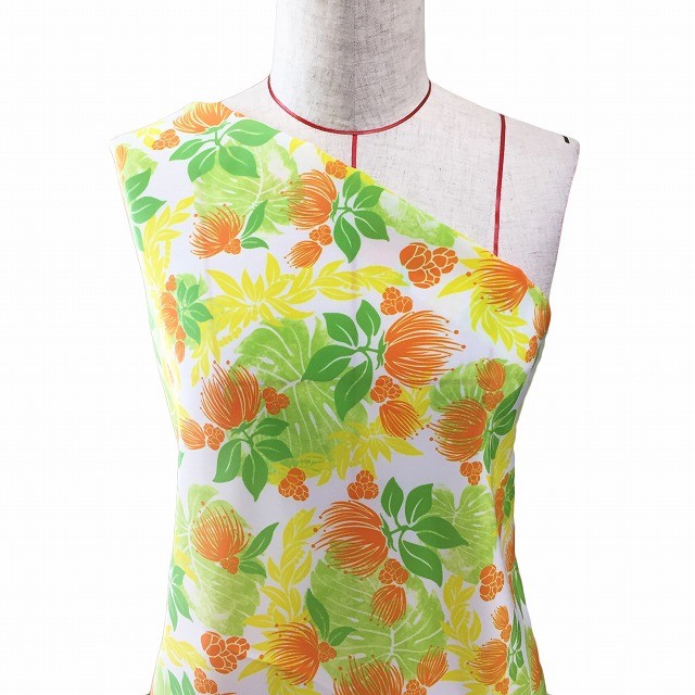 ハワイアン生地 レフア柄 コシボ生地 ホワイト×イエロー KH-514-WHYE-K 3-5営業日後発送