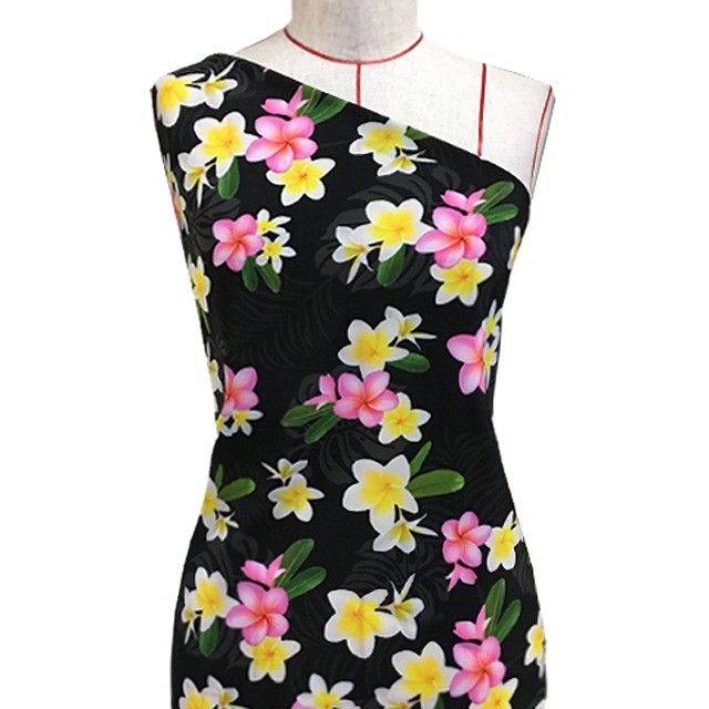 ハワイアン生地 プルメリア柄 コシボ生地 ブラック KH-518-BK-K 3-5営業日後発送