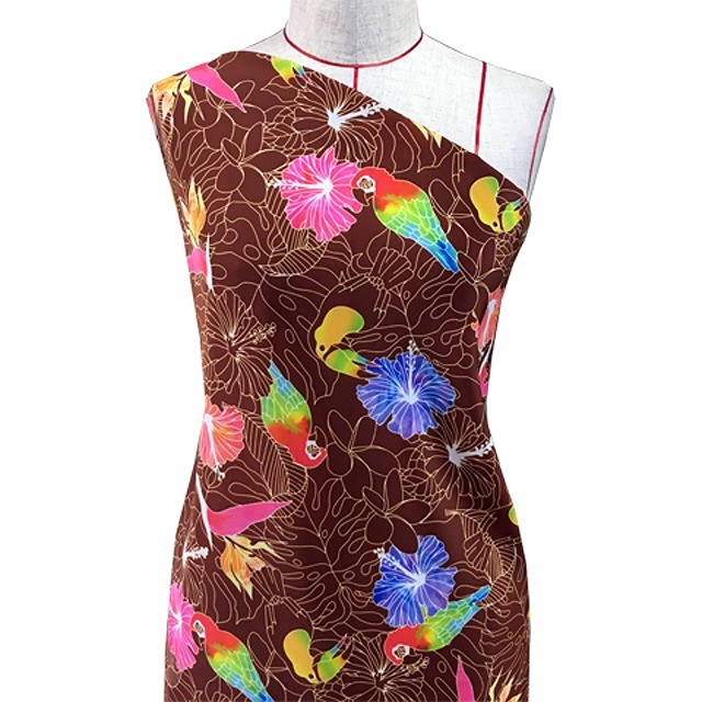 ハワイアン生地 トロピカルバード柄 コシボ生地 ブラウン KH-526-BR-K 3-5営業日後発送