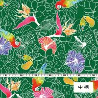 ハワイアン生地 トロピカルバード柄 コシボ生地 グリーン KH-526-GR-K 3-5営業日後発送
