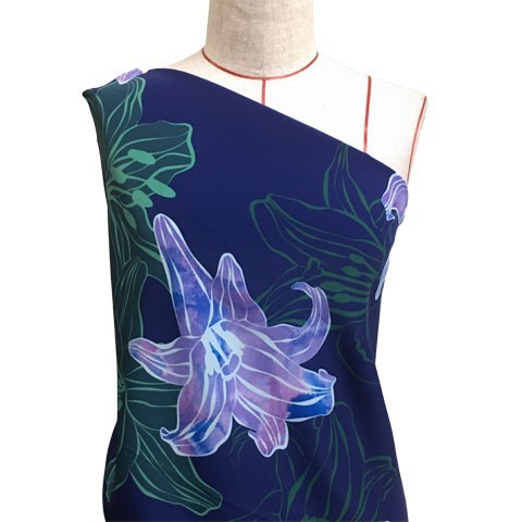 ハワイアン生地 リリー柄 コシボ生地 ネイビー KH-528-NV-K 3-5営業日後発送