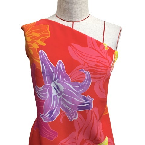 ハワイアン生地 リリー柄 コシボ生地 レッド×イエロー KH-528-RDYE-K 3-5営業日後発送