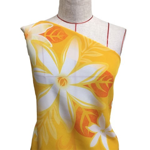 ハワイアン生地 ティアレ柄 コシボ生地 イエロー KH-530-YE-K 3-5営業日後発送