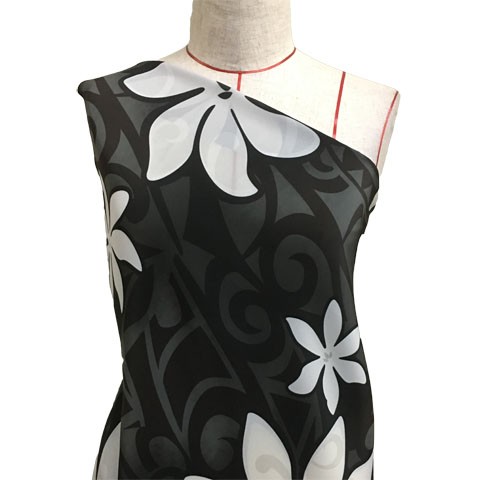 ハワイアン生地 ティアレ柄 コシボ生地 ブラック KH-532-BK-K 3-5営業日後発送