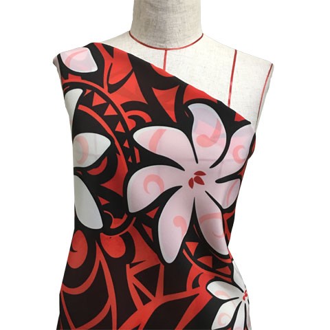 ハワイアン生地 ティアレ柄 コシボ生地 レッド KH-532-RD-K 3-5営業日後発送