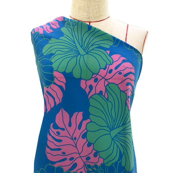 ハワイアン生地 ハワイアンフラワー柄 コシボ生地 ブルー×グリーン KH-536-BLGR-K 3-5営業日後発送