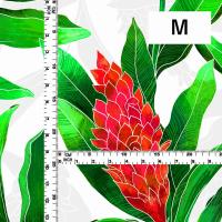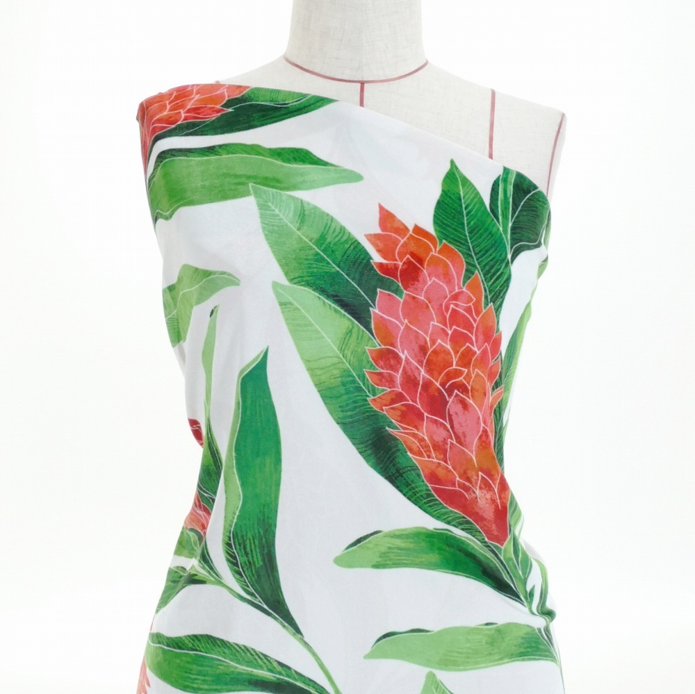 ハワイアン生地 レッドジンジャー柄 ストレッチベロア生地 ホワイト KH-562-WH-V 3-5営業日後発送