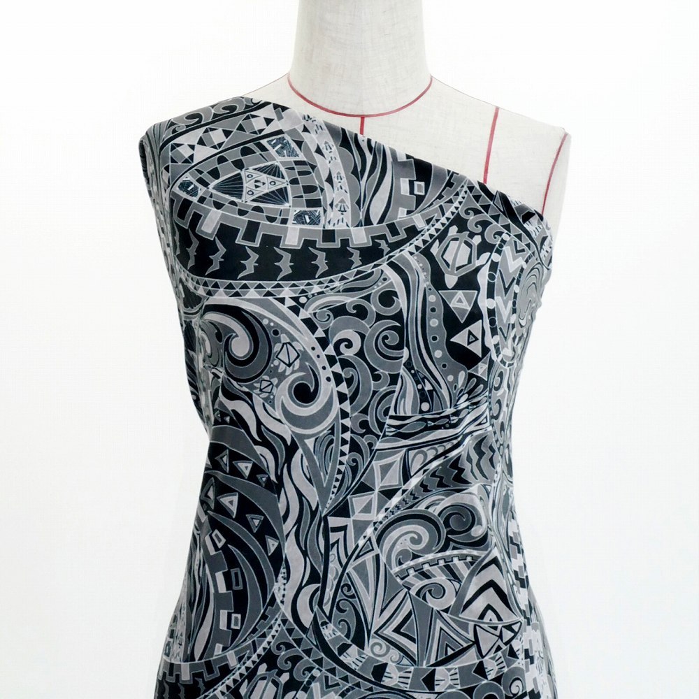ハワイアン生地 モアナ×カヒコ柄 ストレッチベロア生地 グレー KH-570-GY-V 3-5営業日後発送
