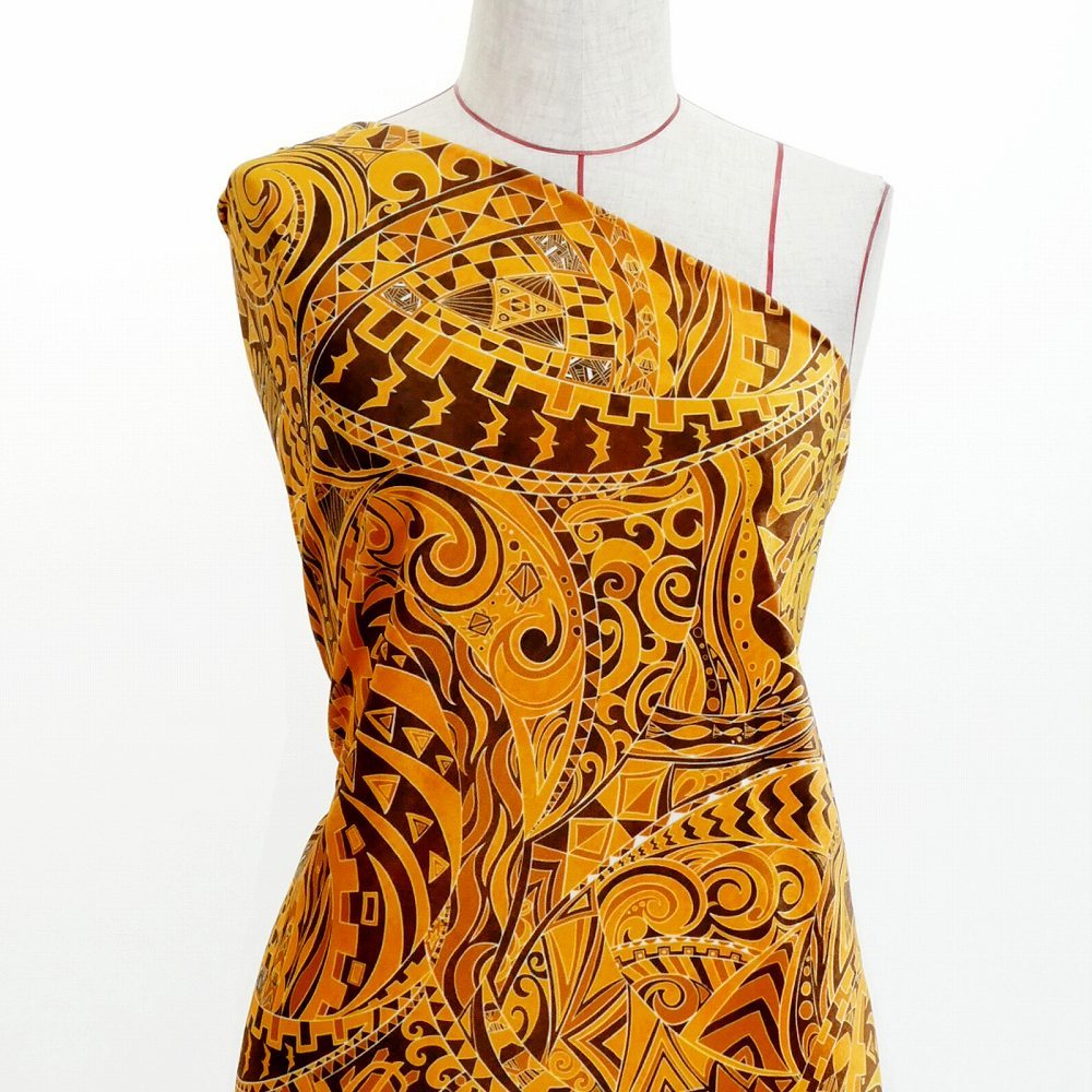 ハワイアン生地 モアナ×カヒコ柄 ストレッチベロア生地 オレンジ KH-570-OR-V 3-5営業日後発送