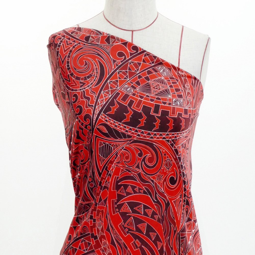 ハワイアン生地 モアナ×カヒコ柄 ストレッチベロア生地 レッド KH-570-RD-V 3-5営業日後発送