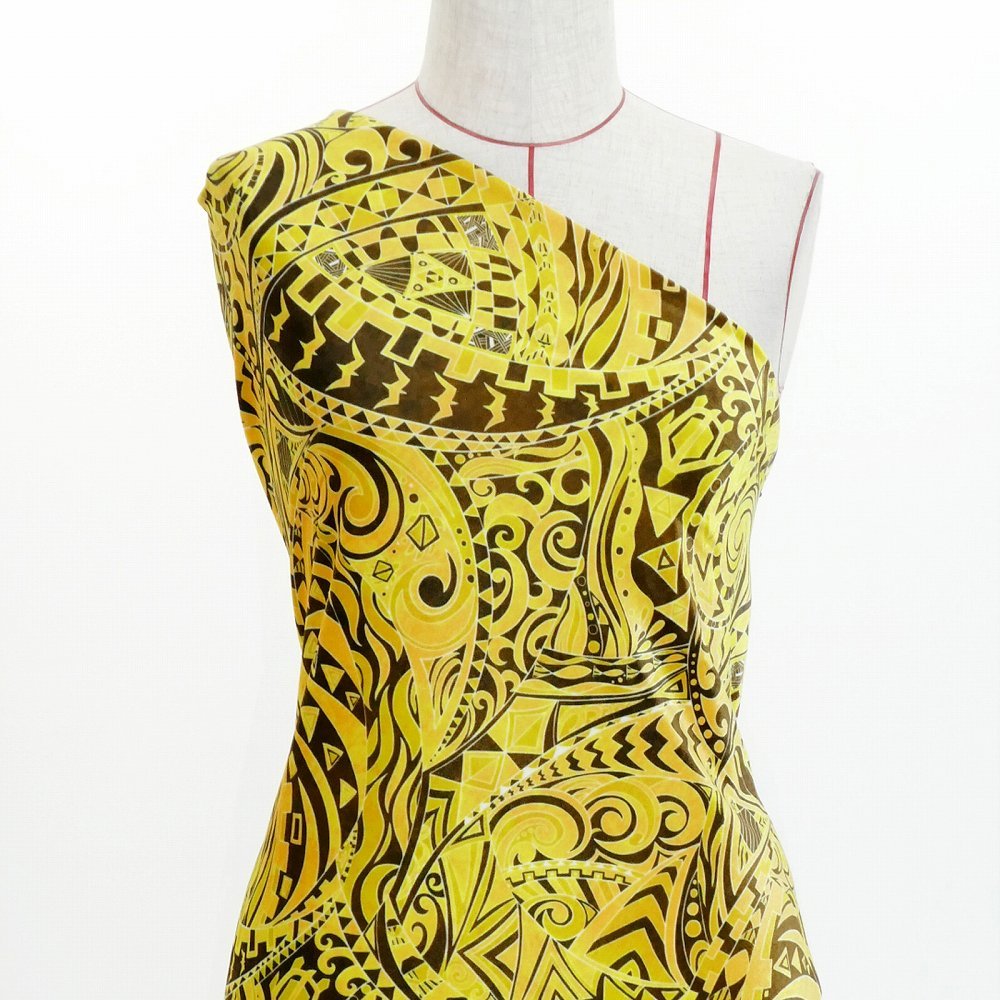 ハワイアン生地 モアナ×カヒコ柄 ストレッチベロア生地 イエロー KH-570-YE-V 3-5営業日後発送