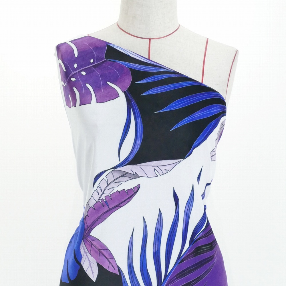 ハワイアン生地 モダンリーフ柄 ストレッチベロア生地 パープル KH-572-PU-V 3-5営業日後発送