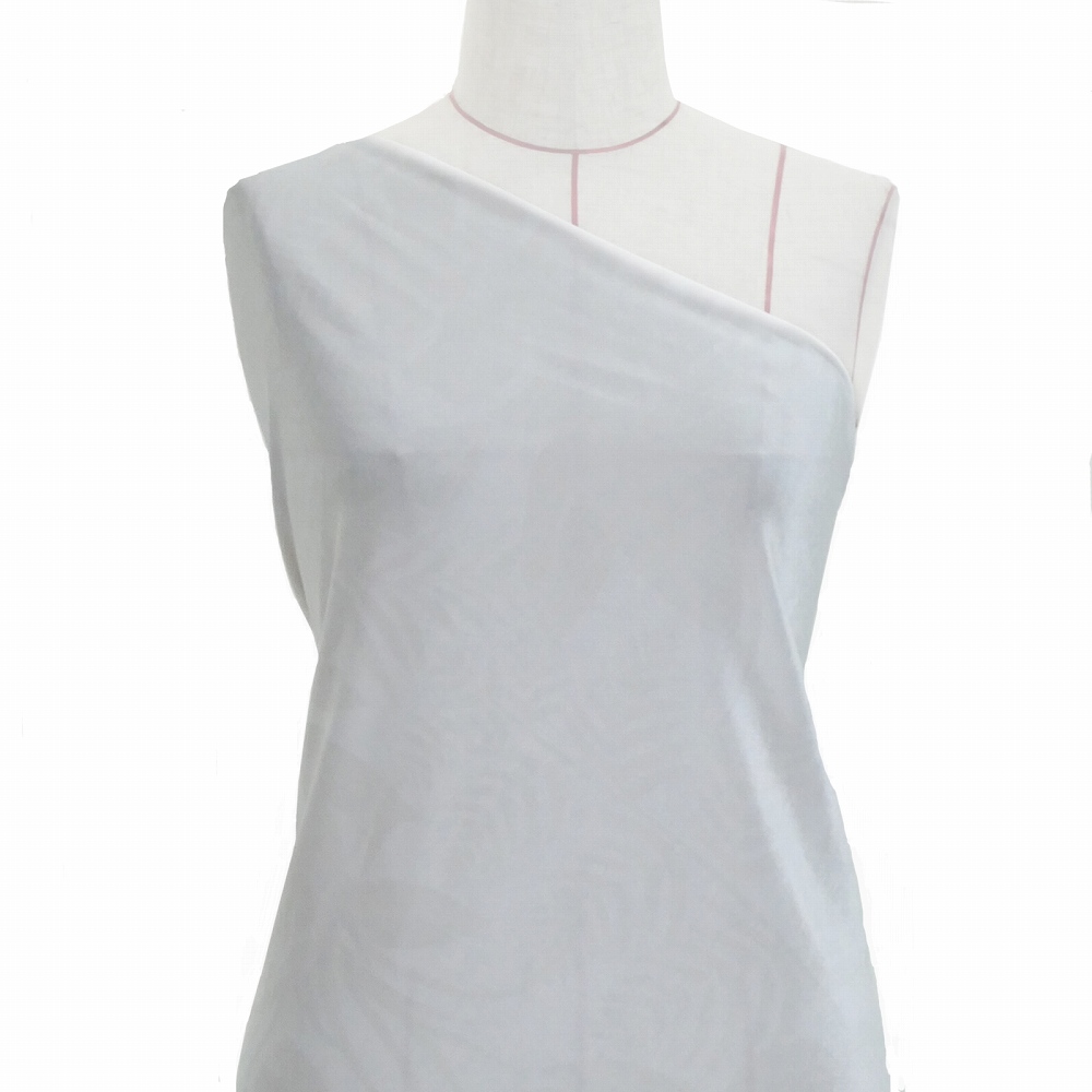 ハワイアン生地 ハワイアンリーフ柄 コシボ・シャンタン・ストレッチベロア選べる生地 ホワイト KH-574-WH 3-5営業日後発送