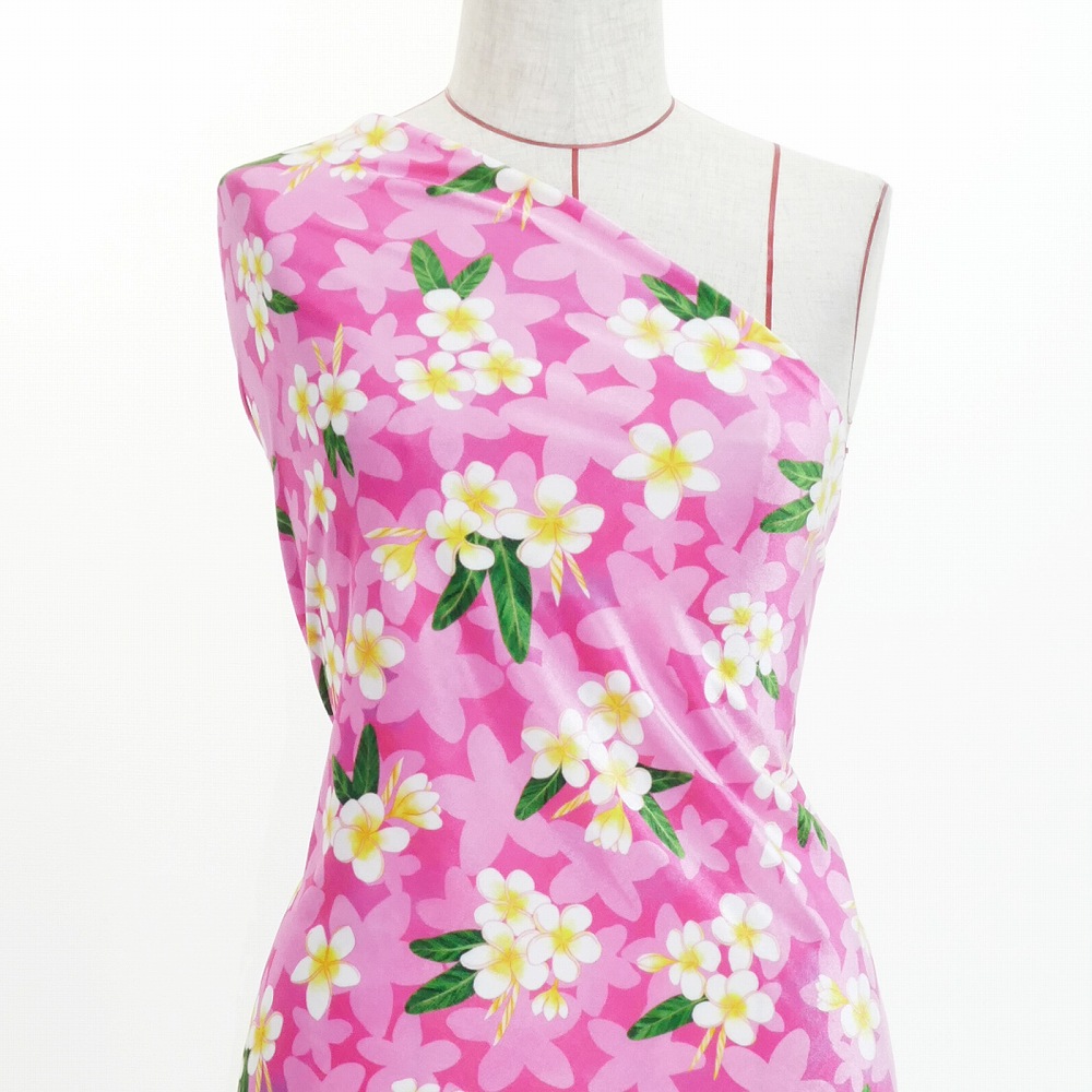 ハワイアン生地 プルメリア柄 コシボ・シャンタン・ストレッチベロア選べる生地 ピンク KH-576-PI 3-5営業日後発送