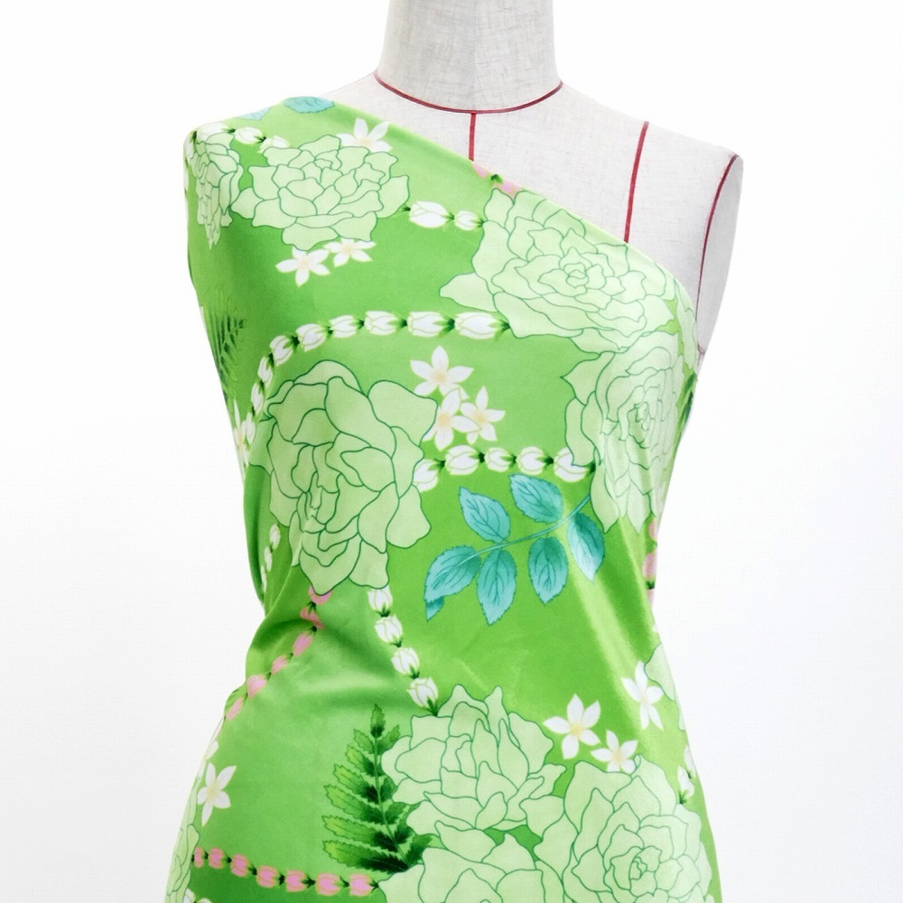 ハワイアン生地 ロケラニ柄 コシボ・シャンタン・ストレッチベロア選べる生地 グリーン KH-580-GR 3-5営業日後発送