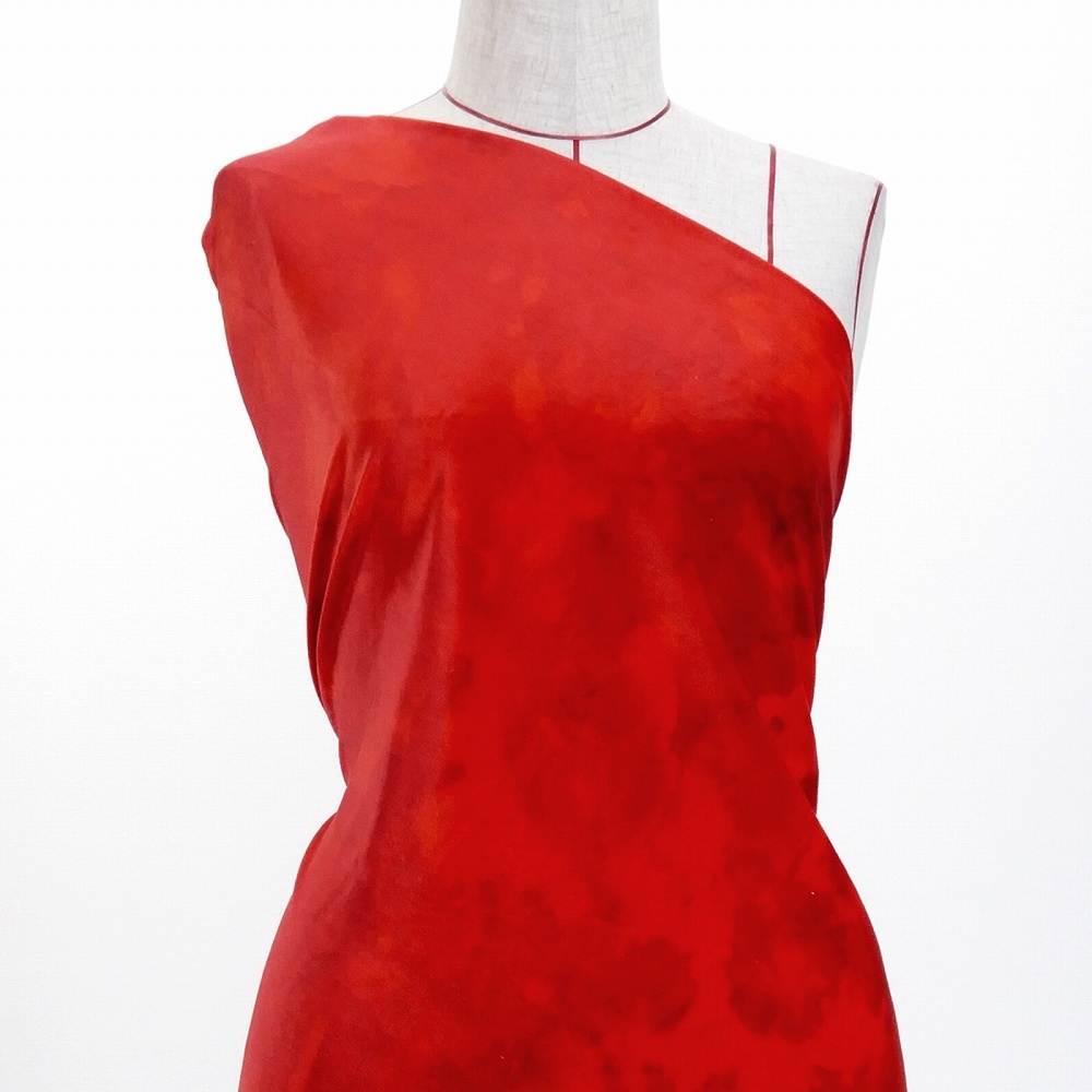 ハワイアン・フラメンコ生地 水彩風 コシボ・シャンタン・ストレッチベロア選べる生地 レッド KH-582-RD 3-5営業日後発送