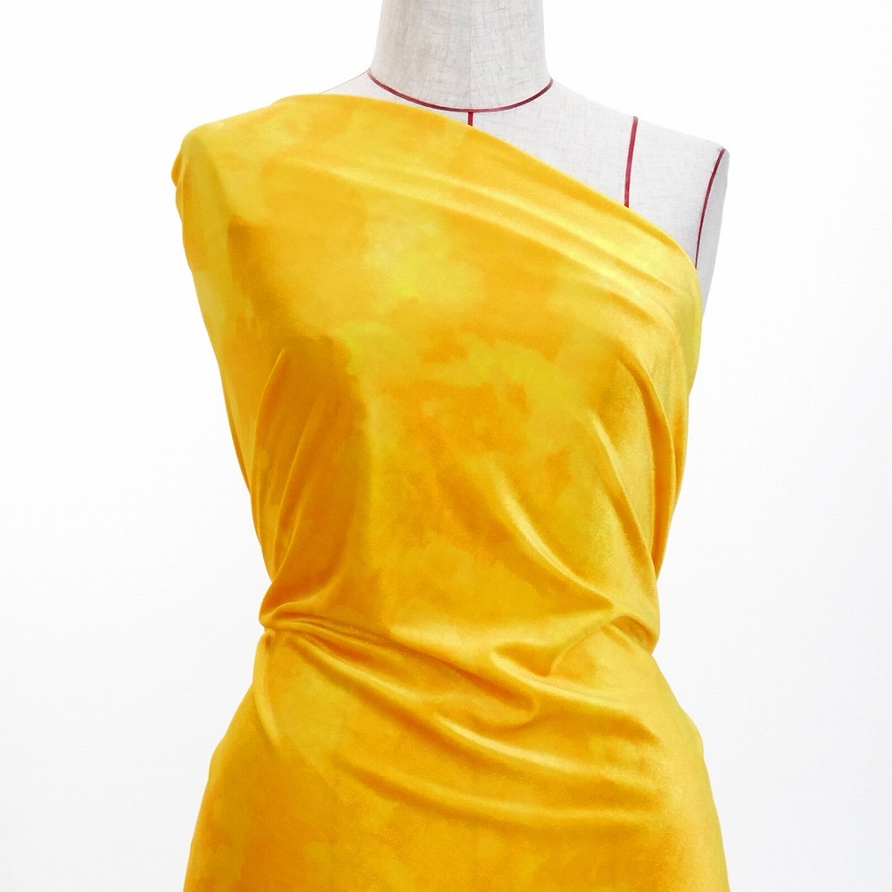 ハワイアン・フラメンコ生地 水彩風 コシボ・シャンタン・ストレッチベロア選べる生地 イエロー KH-582-YE 3-5営業日後発送