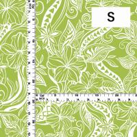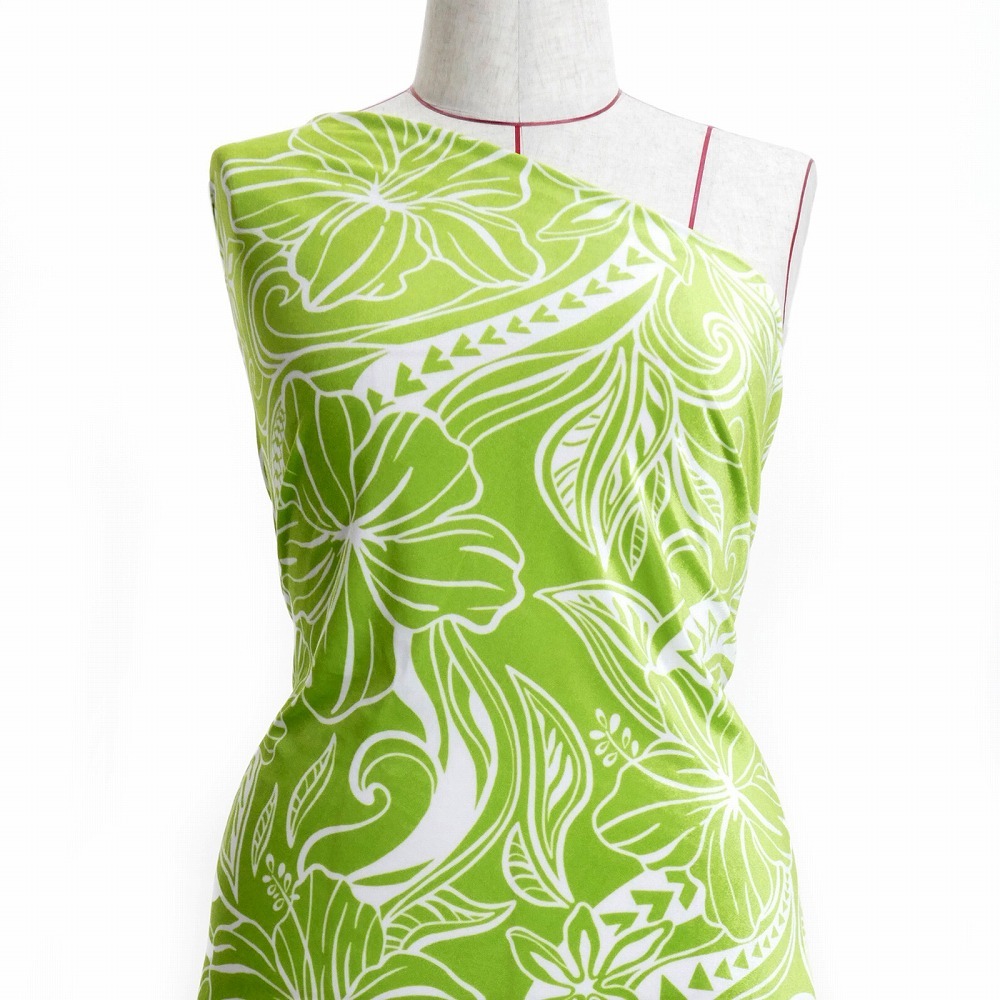 ハワイアン生地 カヒコ×ハイビスカス柄 コシボ・シャンタン・ストレッチベロア選べる生地 グリーン KH-592-GR 3-5営業日後発送