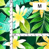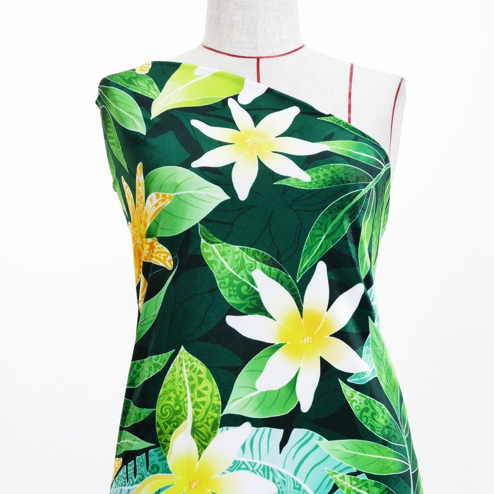 ハワイアン生地 ティアレ柄 コシボ・シャンタン・ストレッチベロア選べる生地 グリーン KH-606-GR 3-5営業日後発送