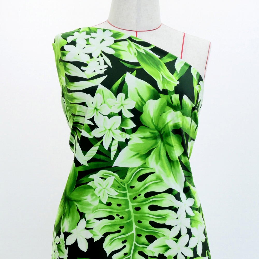 ハワイアン生地 ハイビスカス柄 コシボ・シャンタン・ストレッチベロア選べる生地 グリーン KH-622-GR 3-5営業日後発送
