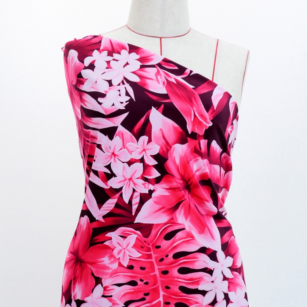 ハワイアン生地 ハイビスカス柄 コシボ・シャンタン・ストレッチベロア選べる生地 レッド KH-622-RD 3-5営業日後発送