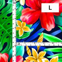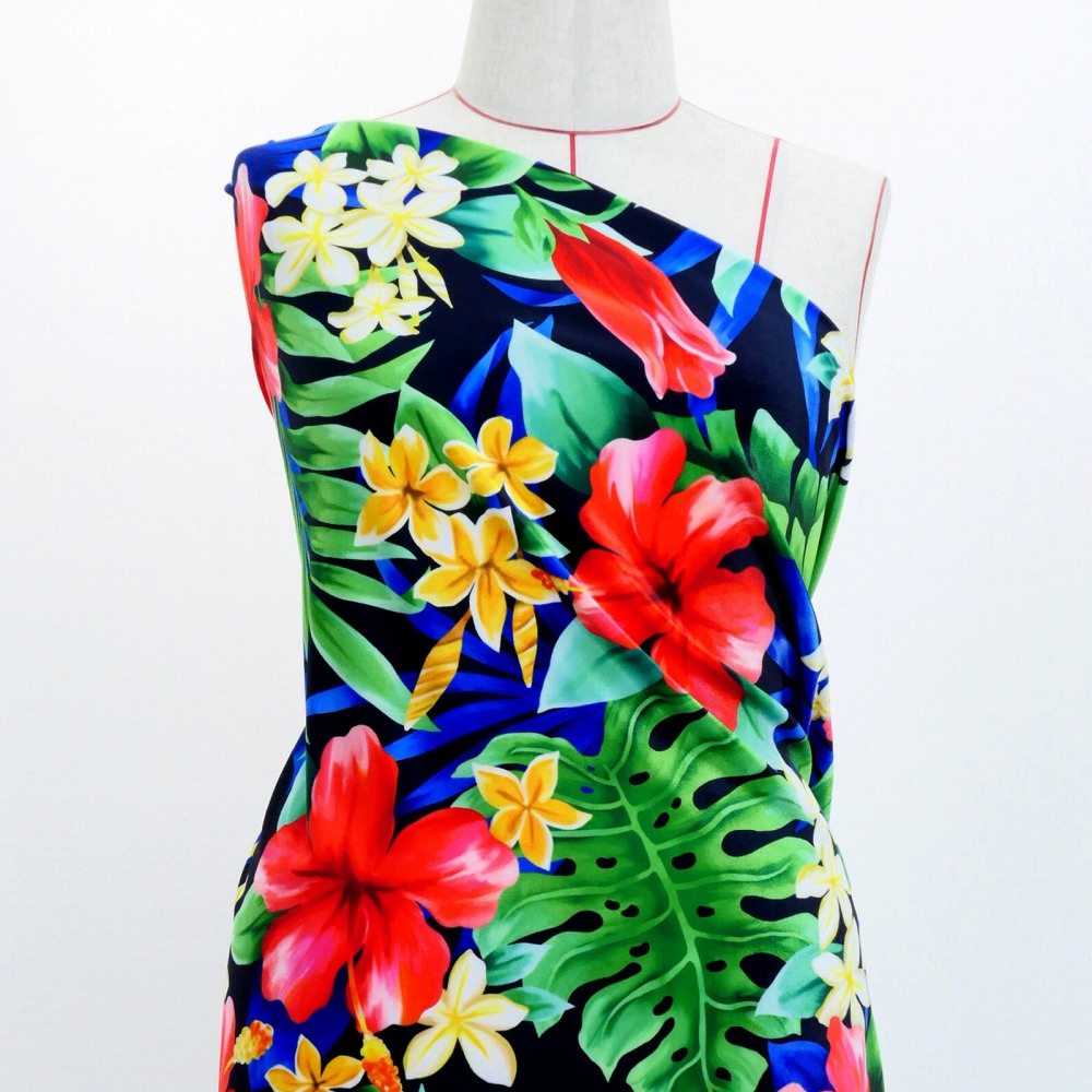 ハワイアン生地 ハイビスカス柄 コシボ・シャンタン・ストレッチベロア選べる生地 レッド×ブルー KH-622-RDBL 3-5営業日後発送
