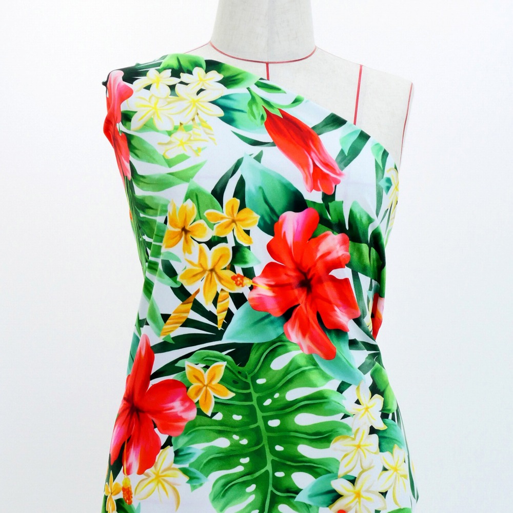 ハワイアン生地 ハイビスカス柄 コシボ・シャンタン・ストレッチベロア選べる生地 レッド×ホワイト KH-622-RDWH 3-5営業日後発送