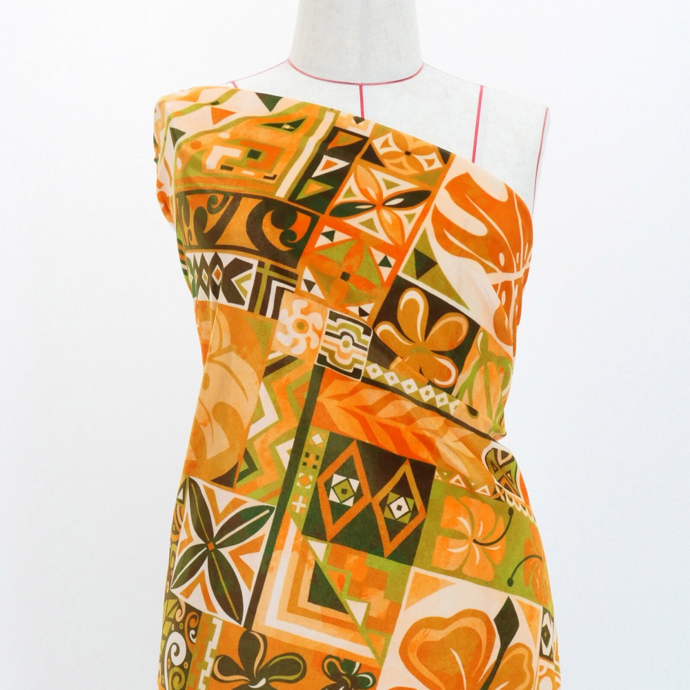 ハワイアン生地 ハワイアン スクエアデザイン柄 コシボ・シャンタン・ストレッチベロア選べる生地 イエロー KH-626-YE 3-5営業日後発送