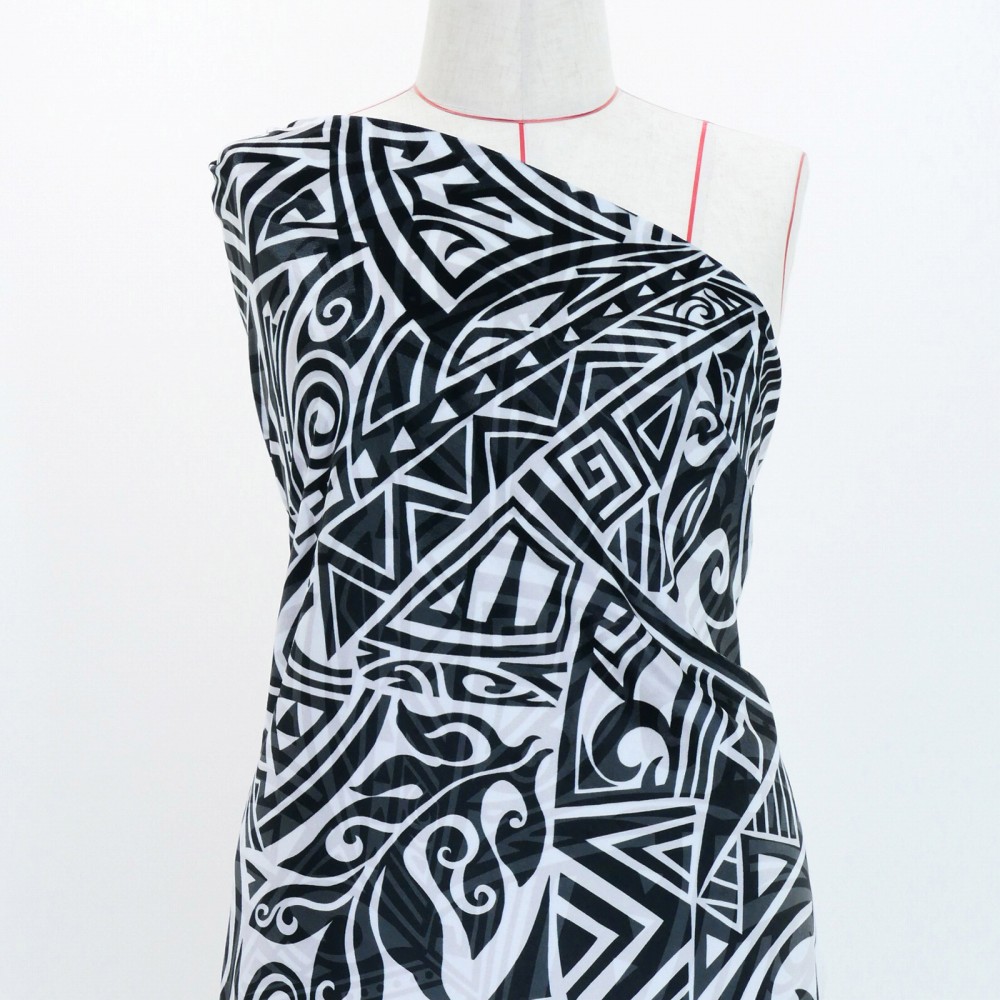 ハワイアン生地 カヒコ柄 コシボ・シャンタン・ストレッチベロア選べる生地 ブラック KH-628-BK 3-5営業日後発送