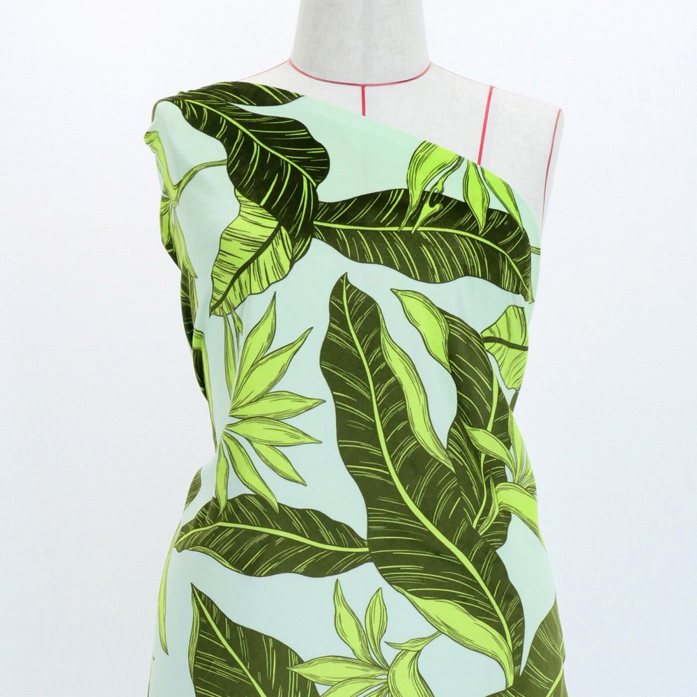 ハワイアン生地 ストレリチア柄 コシボ・シャンタン・ストレッチベロア選べる生地 カーキ KH-630-KA 3-5営業日後発送