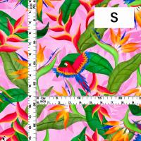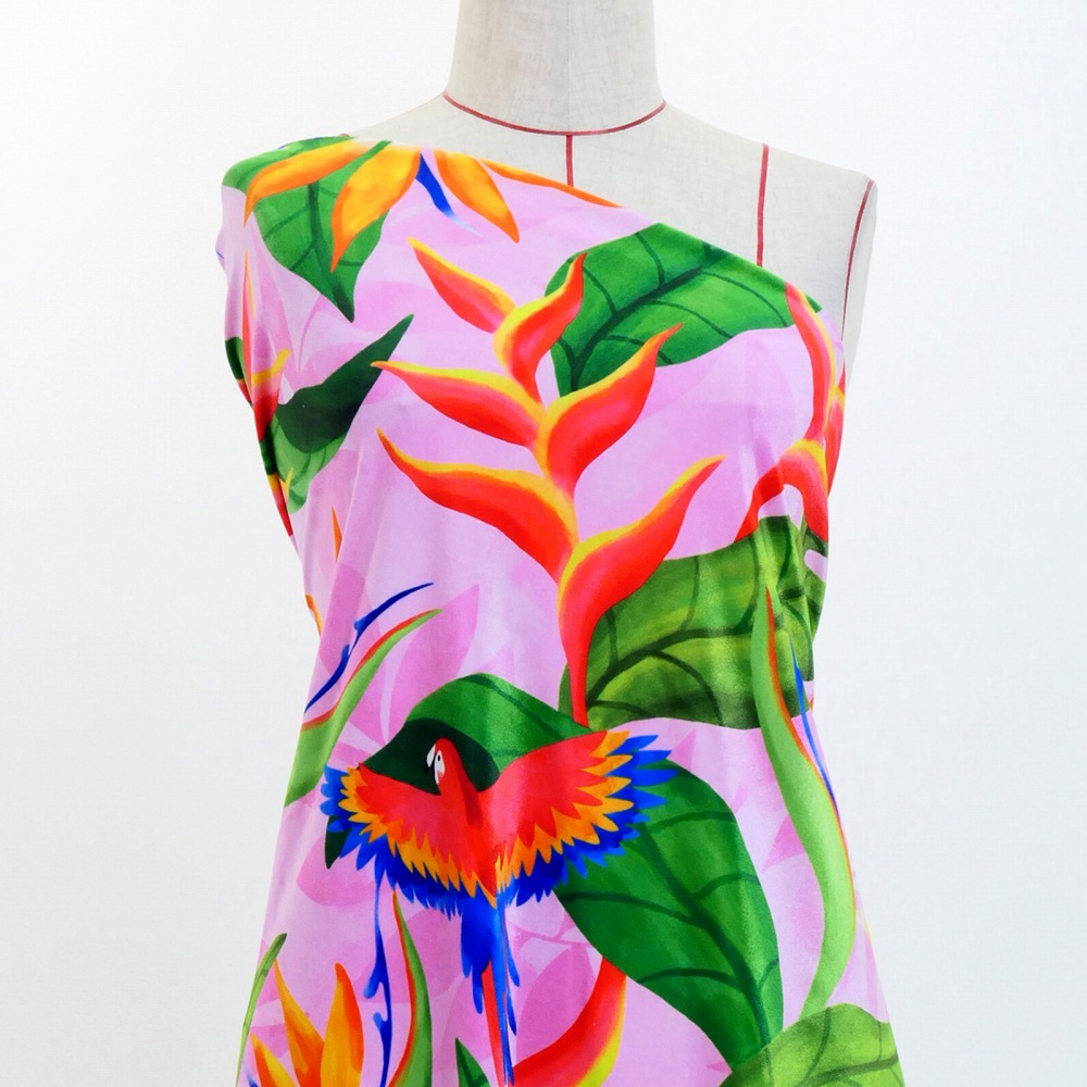 ハワイアン生地 トロピカルバード柄 コシボ・シャンタン・ストレッチベロア選べる生地 ピンク KH-632-PI 3-5営業日後発送