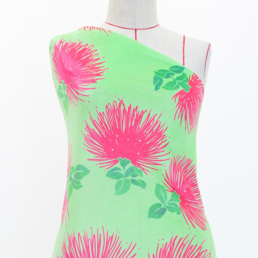 ハワイアン生地 レフア柄 コシボ・シャンタン・ストレッチベロア選べる生地 グリーン KH-634-GR 3-5営業日後発送
