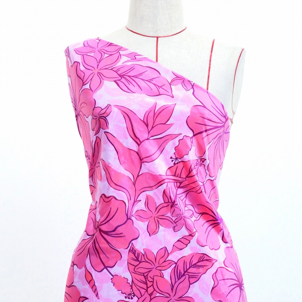 ハワイアン生地 ハワイアンフラワー柄 コシボ・シャンタン・ストレッチベロア選べる生地 ピンク KH-670-PI 3-5営業日後発送