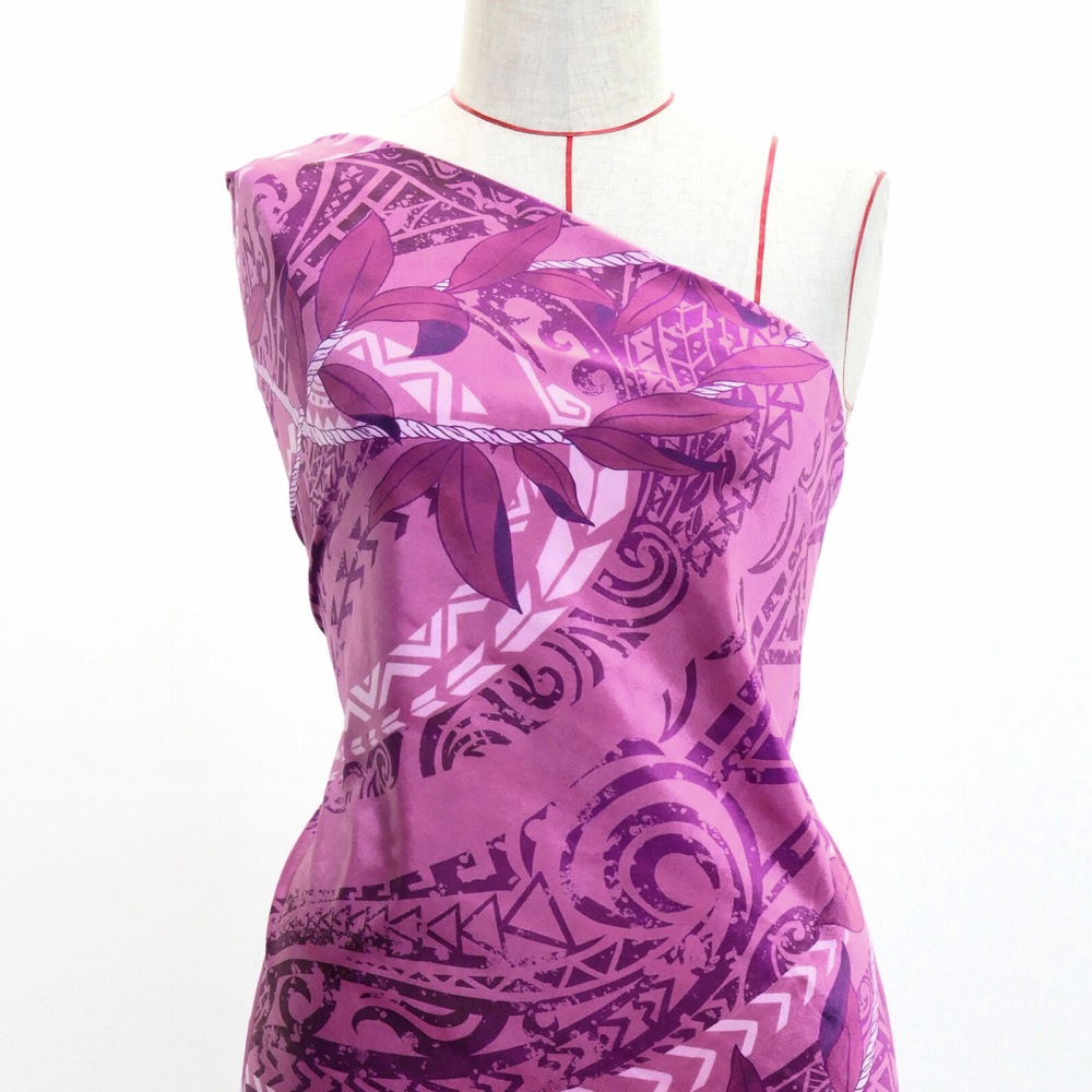ハワイアン生地 リーフレイ&カヒコ柄 コシボ・シャンタン・ストレッチベロア選べる生地 ピンク KH-672-PI 3-5営業日後発送