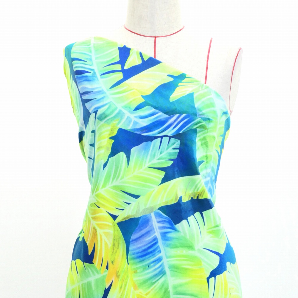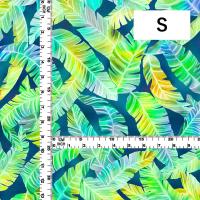 ハワイアン生地 バナナリーフ柄 コシボ・シャンタン・ストレッチベロア選べる生地 グリーン×ブルー KH-674-GRBL 3-5営業日後発送