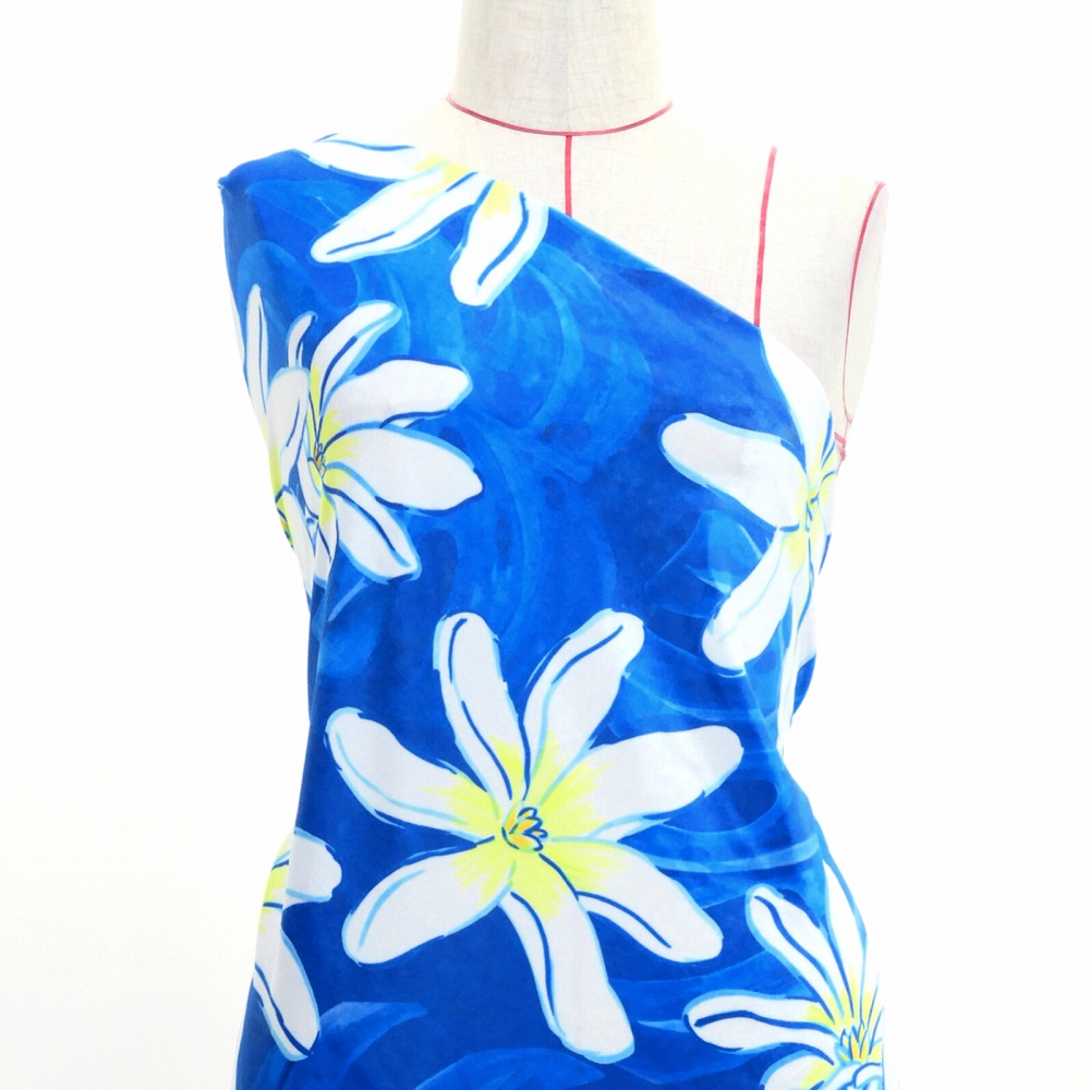 ハワイアン生地 ティアレ&モンステラ柄 コシボ・シャンタン・ストレッチベロア選べる生地 ブルー KH-676-BL 3-5営業日後発送