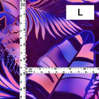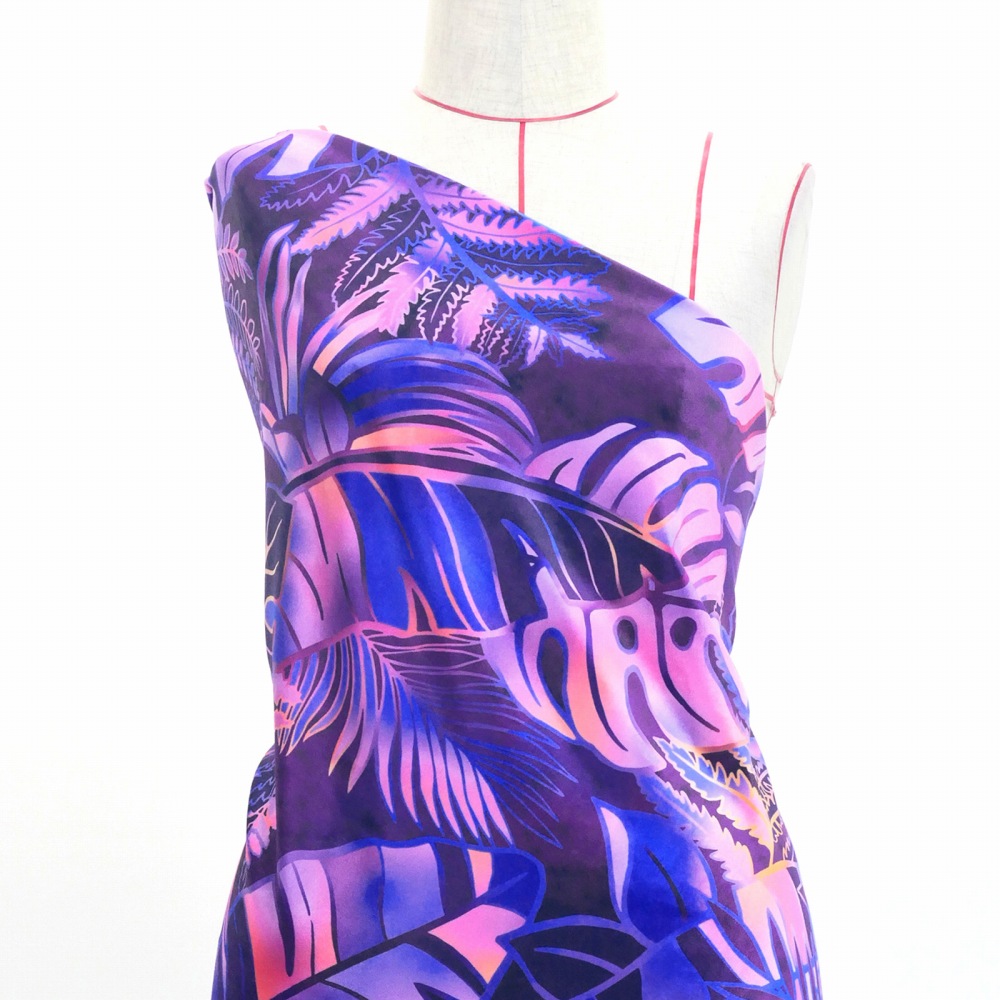 ハワイアン生地 ハワイアンリーフ柄 コシボ・シャンタン・ストレッチベロア選べる生地 パープル KH-682-PU 3-5営業日後発送