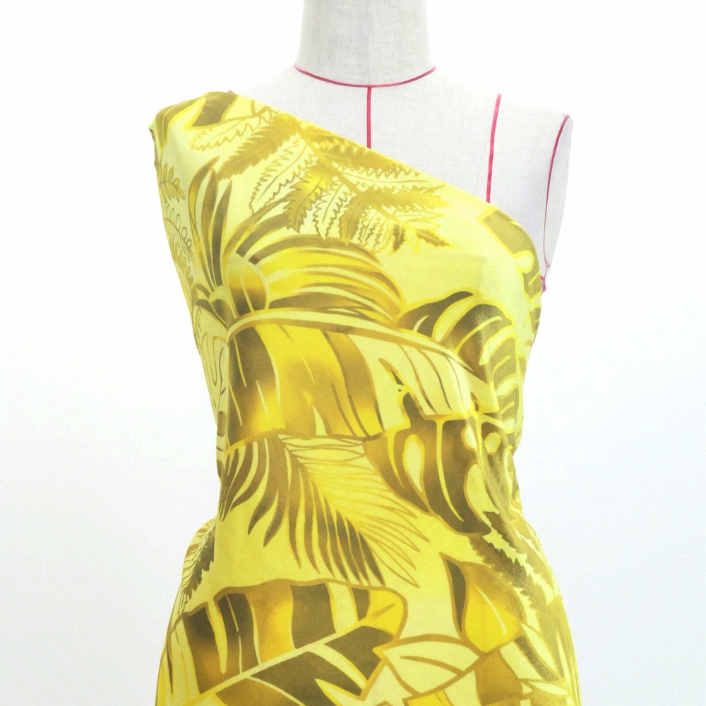 ハワイアン生地 ハワイアンリーフ柄 コシボ・シャンタン・ストレッチベロア選べる生地 イエロー KH-682-YE 3-5営業日後発送