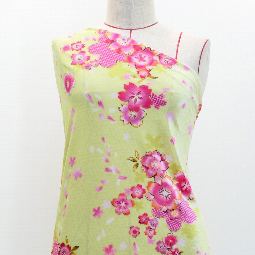 和柄生地 桜柄 コシボ・シャンタン・ストレッチベロア 選べる生地 ベージュ WA-003-BE 3-5営業日後発送